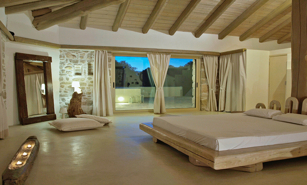 Die Villa hat ein großes Schlafzimmer mit einem Kingsize-Bett, einem offenen Whirlpool und einem